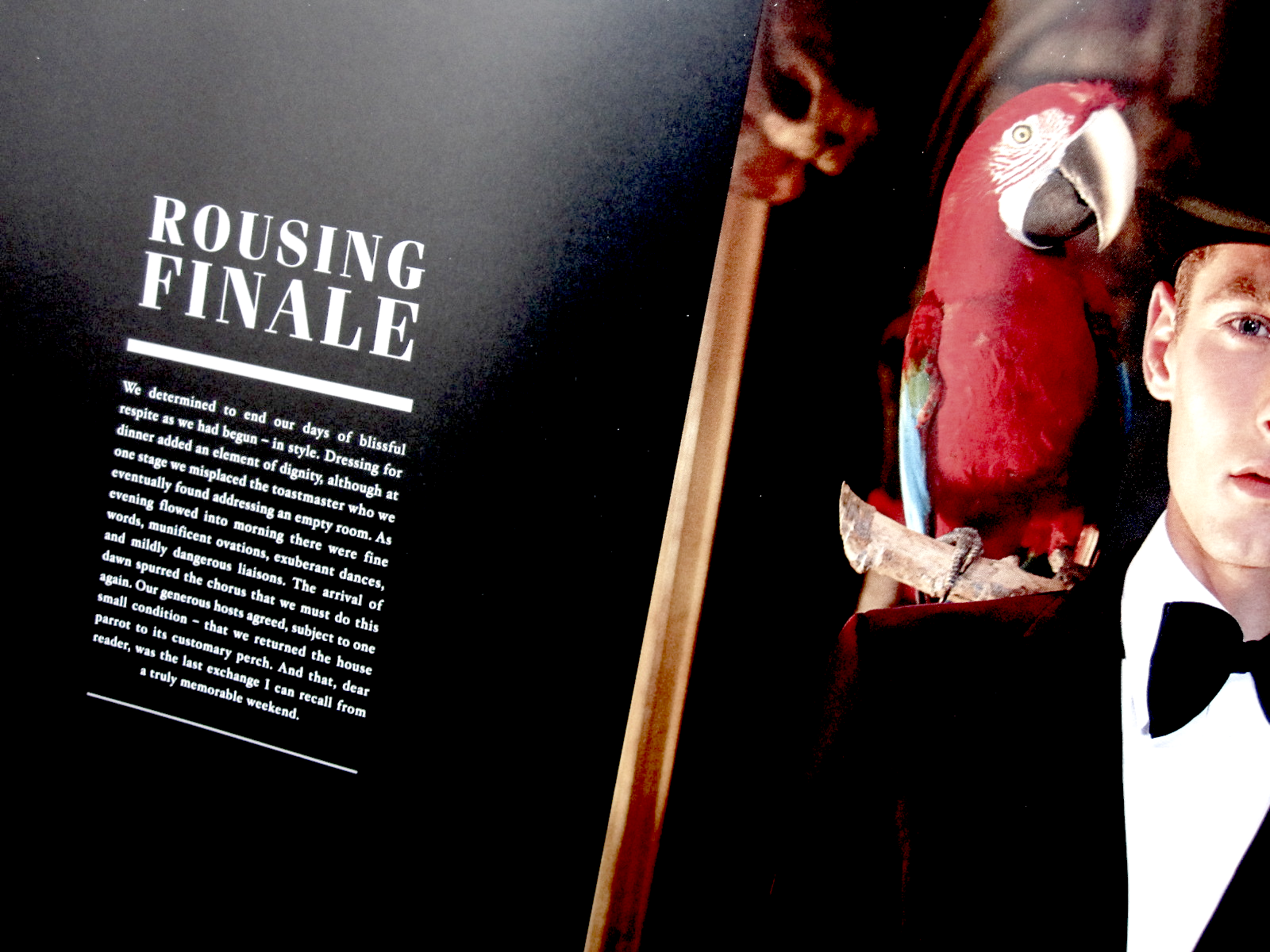 Dressing for dinner added an element of dignity, although at one stage we misplaced the toastmaster who we eventually found addressing an empty room. As evening flowed into morning there were fine words, munificent ovations, exuberant dances, and mildly dangerous liaisons. The arrival of dawn spurred the chorus that we must do this again. Our generous hosts agreed, subject to one small condition – that we returned the house parrot to its customary perch. And that, dear reader, was the last exchange I can recall from a truly memorable weekend